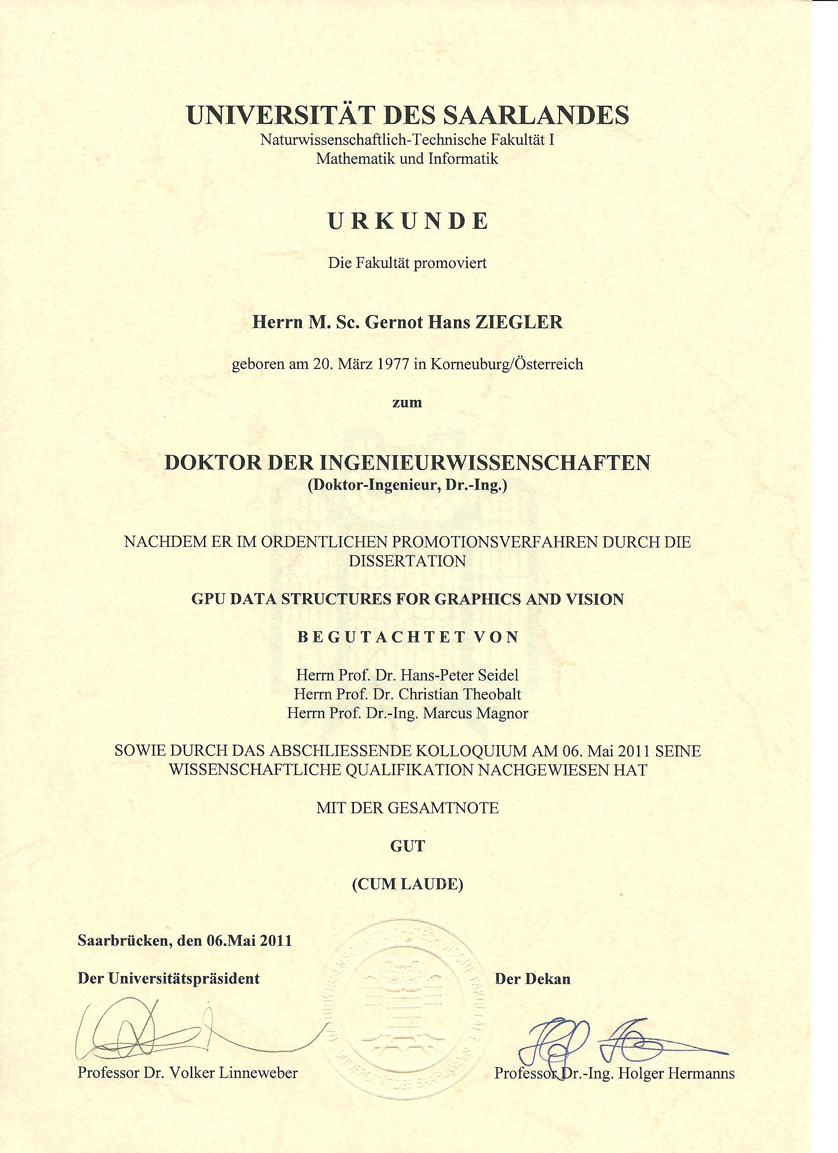 | 2003-2008 | Max-Planck-Institute for Informatics, Saarbrücken, Germany Research engineer/Doctoral candidate in graphics hardware based Visual Computing in the Computer Graphics group. |